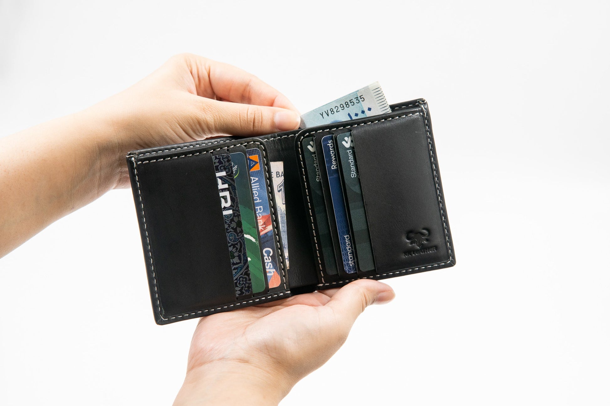 The Cooper Black Maker's Edition by Cordavio is a timeless accessory, handcrafted from the most premium full-grain leather. Designed with thoughtful attention to detail, it offers ample space for your essentials while maintaining a sleek and compact profile. Over time, this wallet develops a rich patina, adding to its uniqueness and character. With its refined look and durable construction, the Cooper wallet is an ideal companion for both everyday use and special occasions.