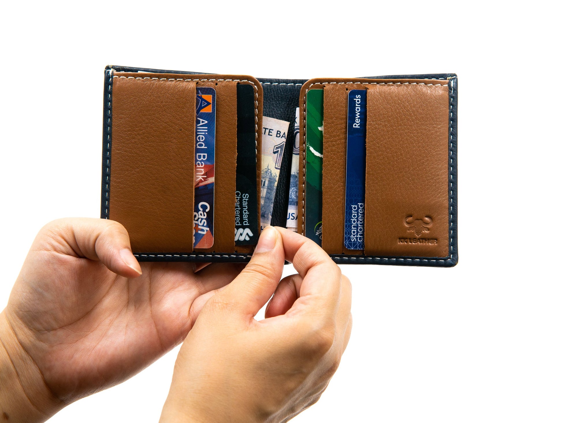 2 stylish side-through compartments behind card-slots |