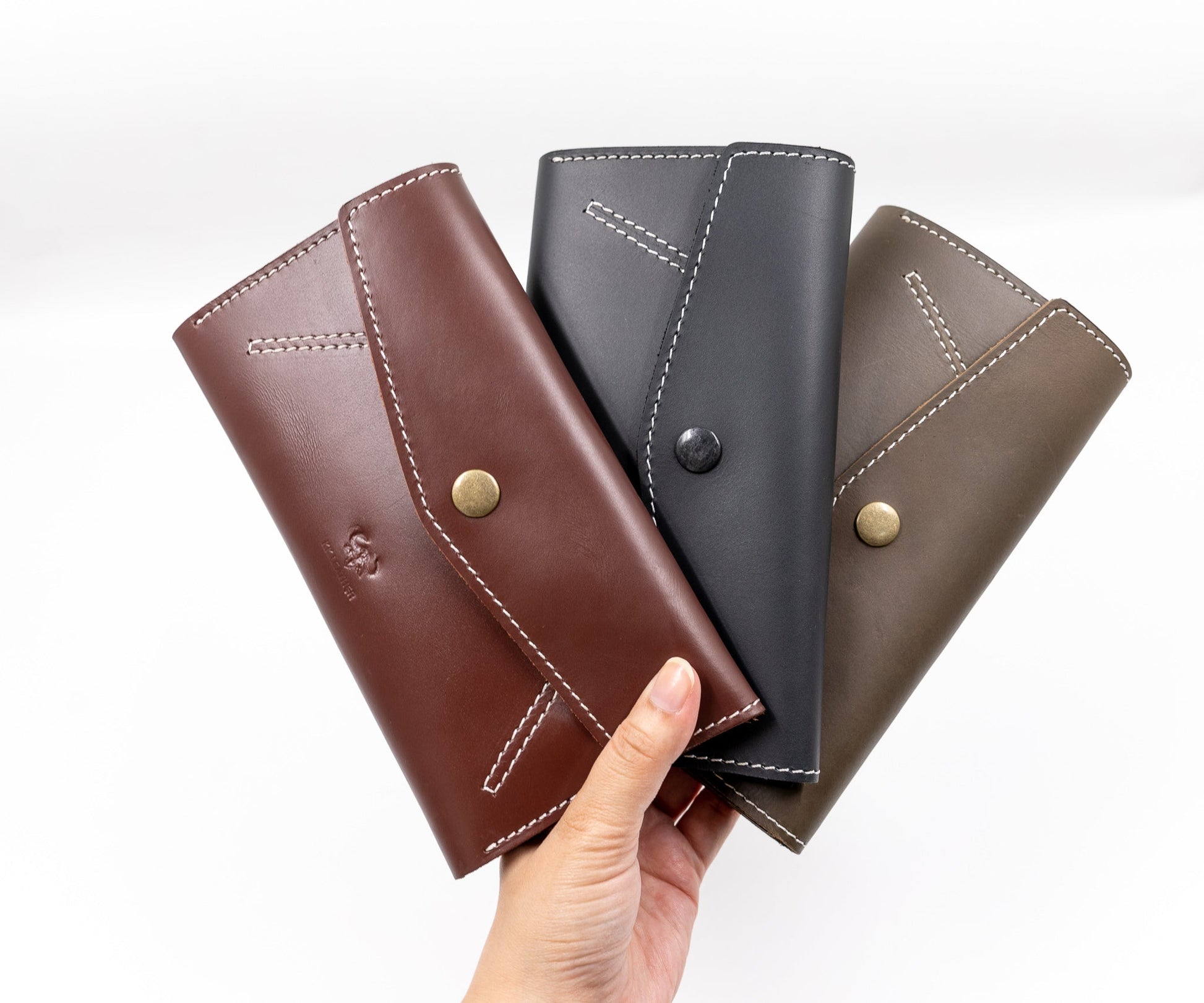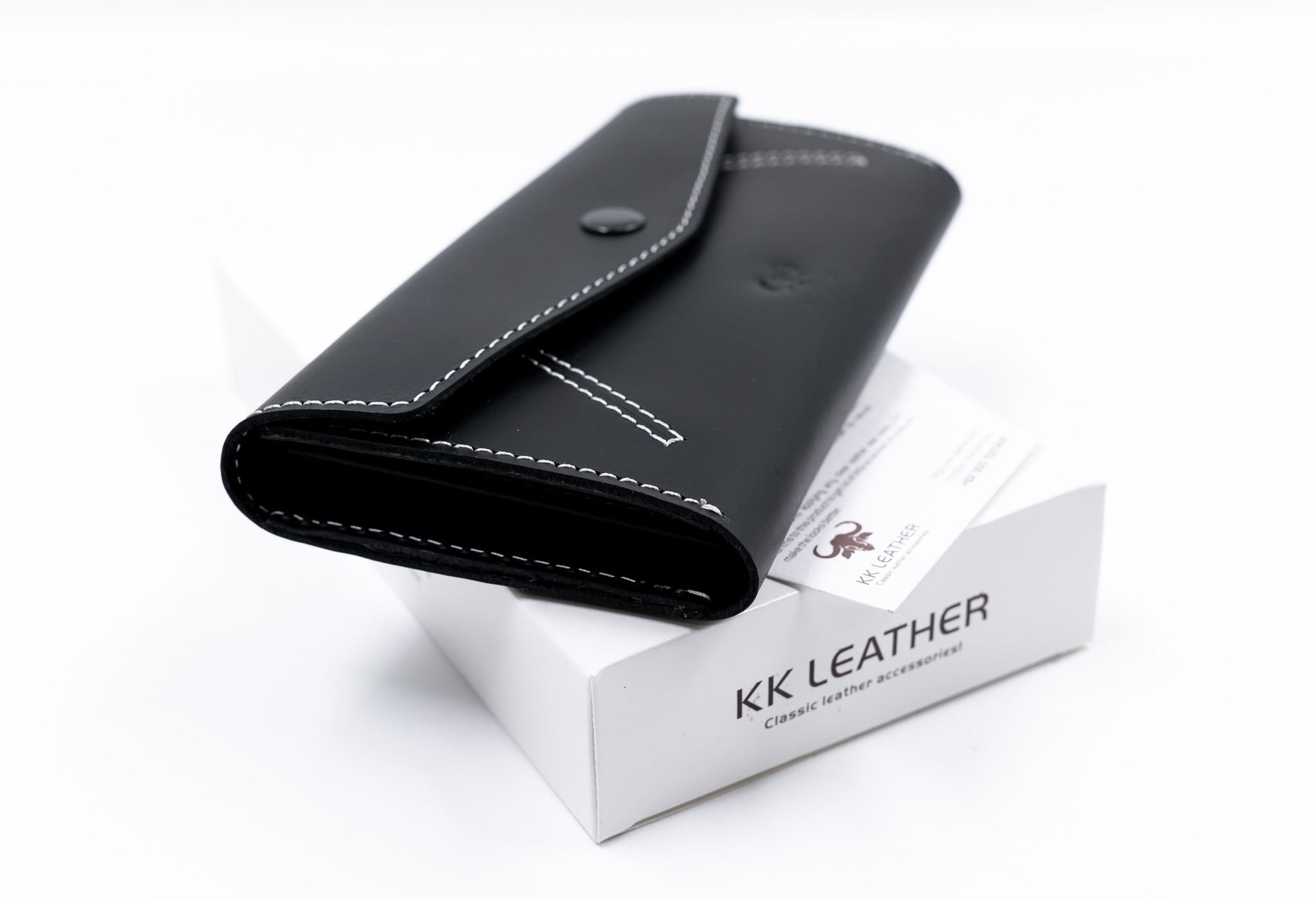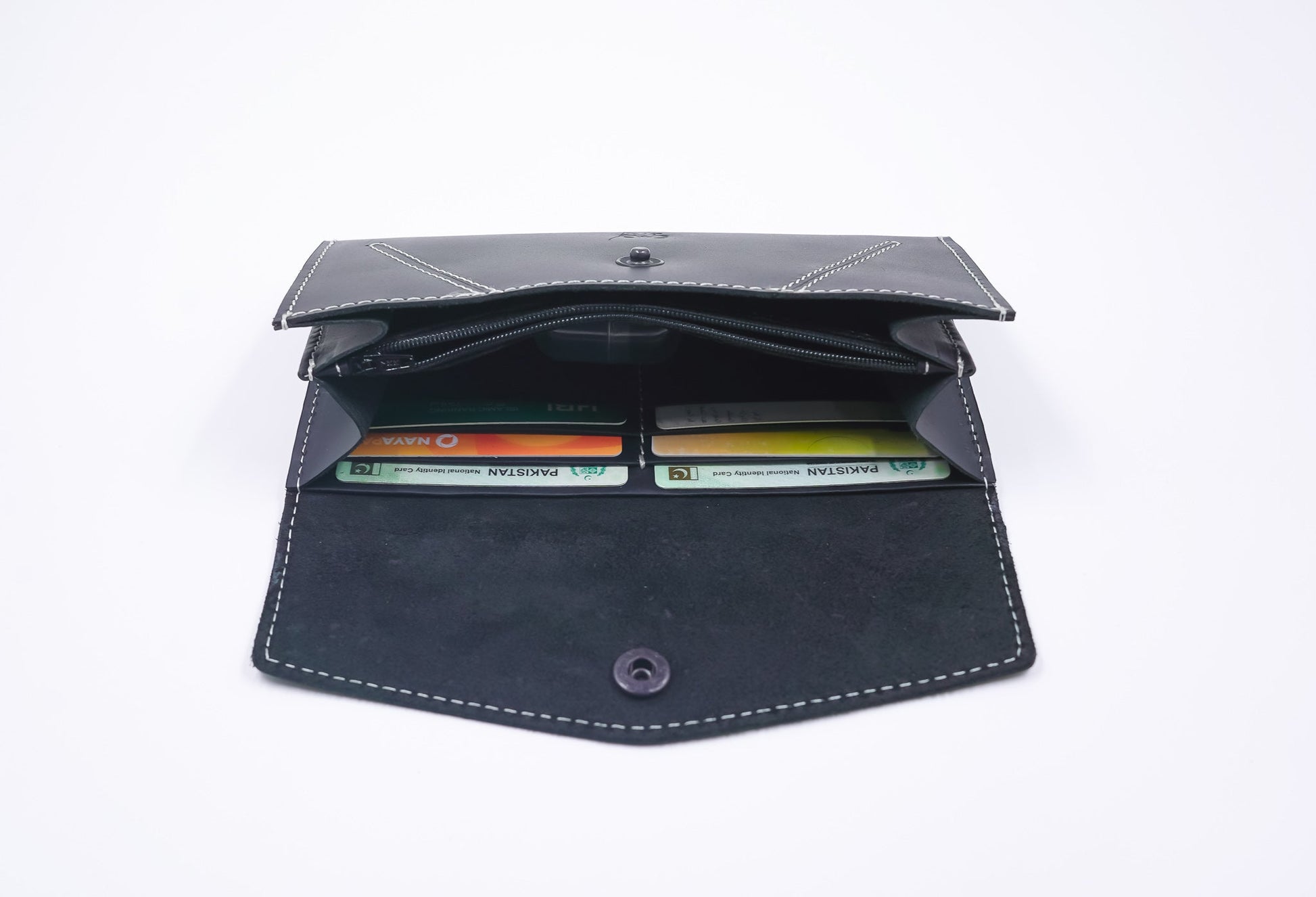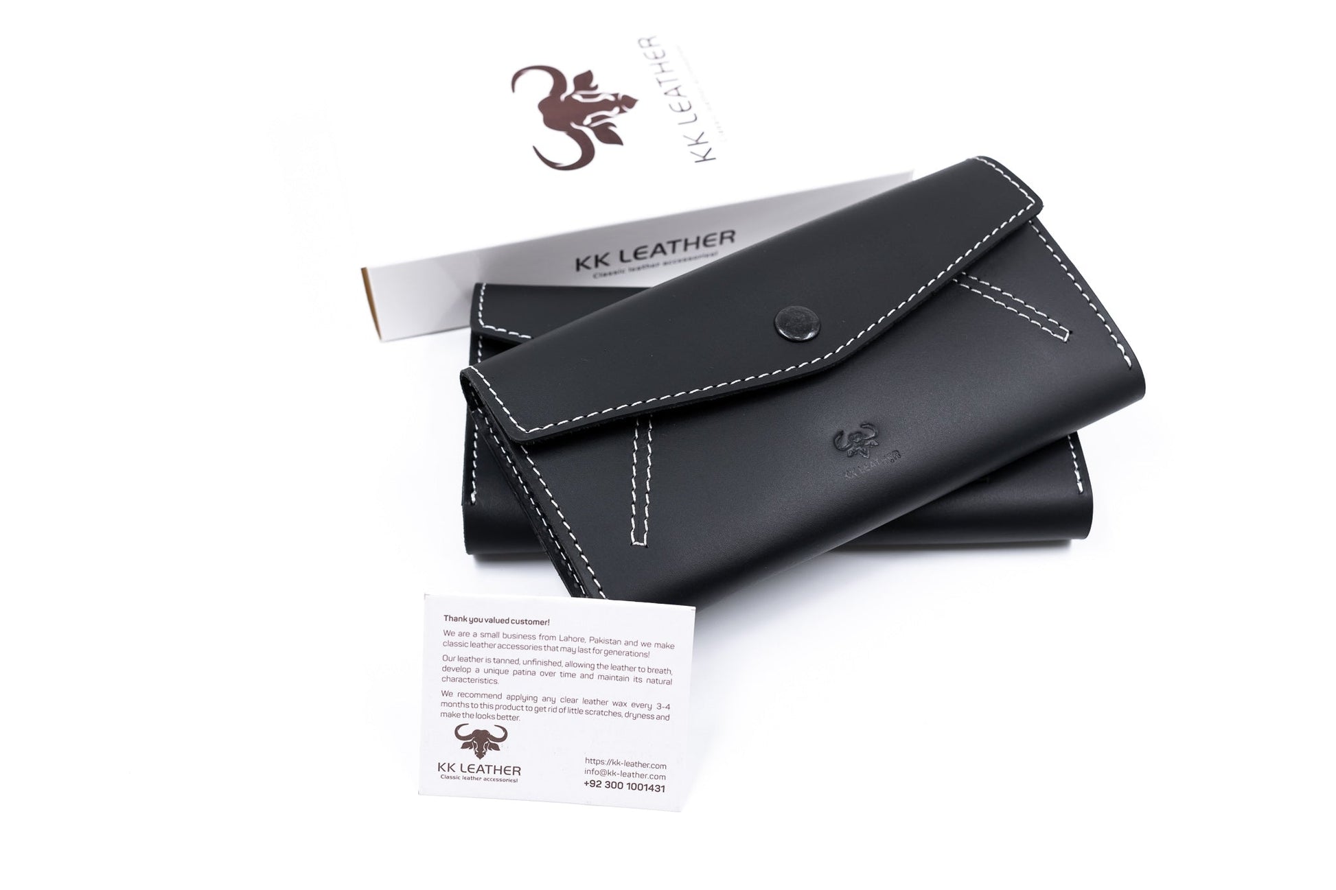 The Lily Black Maker's Edition by Cordavio is a sophisticated accessory crafted for the modern woman who values both elegance and functionality. Handcrafted from the most premium full-grain leather, this clutch gracefully matures with use, developing a rich patina that tells its own story. Designed to complement both day and evening settings, it offers ample space for essentials while maintaining a sleek, minimalist profile. With each piece showcasing natural variations, the Lily clutch is a unique and stylish companion, blending timeless style with practical elegance.